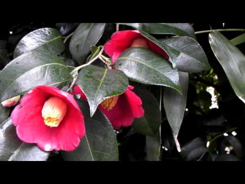 (いろんな「椿」と、「春山茶花」を掲載)(Camellia)椿(つばき)科。 学名  Camellia japonica(薮椿)Camellia japonica var. decumbens(雪椿) Camellia vernalis(春山茶花) Camellia  : ツバキ(カメリア)属 japonica  : 日本のdecumbens : 伏したvernalis  : 春のCamellia は、17世紀のチェコスロバキアの宣教師「Kamell カメル」さんの名にちなむ。椿はカメルさんが18世紀に東洋からヨーロッパにもたらしたことで広まった。 英名でも「カメリア」と呼ぶ。 開花時期は1/20頃~  5/10頃(薮椿)。日本特産(薮椿)。 一般に「椿」といったらこの薮椿を指すようだ。一重や八重がある。園芸品種多数。佗助(わびすけ)などいろいろ種類がある。「古事記」では”都婆岐(つばき)”、「日本書記」には”海石榴(つばき)”の字で 表現されている。(現在の奈良県桜井市金屋に、昔(奈良時代等)「海石榴市(つばいち)」という市場があり交通の要所ということもあり賑わった)。 椿”の字は「万葉集」で初めて登場する。「つばき」の読み方の由来には諸説あり。1.”光沢がある”意の古語「艶葉木(つやはき)」から。(葉は濃い緑色で光沢でピカピカ)。 2.葉に厚みがある意味の「厚葉木」から。3.強い葉っぱの木の意味の「強葉木」から。4.落ちた花が、刀の鍔(つば)に似ており「鍔木(つばき)」の名から。5.朝鮮名の「冬柏(つくばく)」の名から。